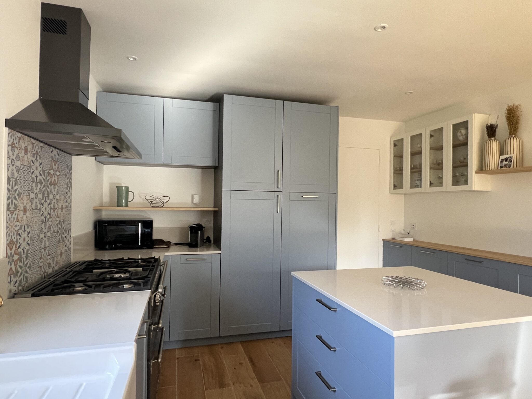 Dans cette belle maison basée sur Saint-Lunaire, nous rénovons les sols et la peinture des murs de l’entrée, la buanderie et séjour ainsi qu’à l’étage. Nous repensons et réalisons également la cuisine avec un ilot central.