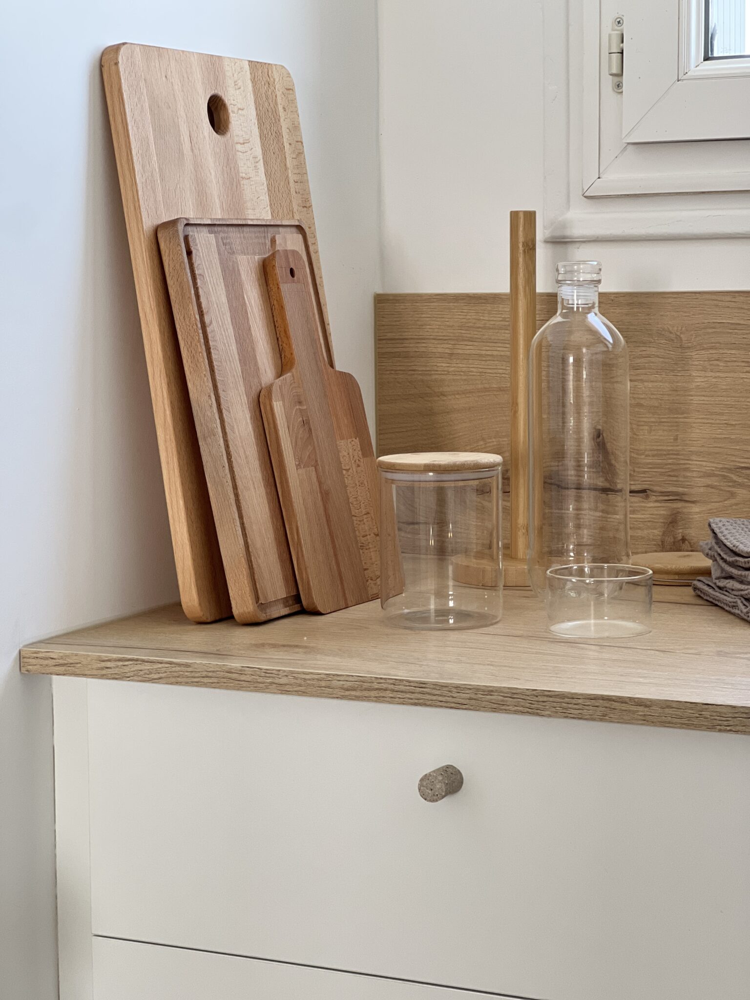 Nous avons dessiné une nouvelle cuisine en l’équipant essentiellement de meubles bas et peu profonds sur la partie gauche pour agrandir la place au sol et faciliter ainsi la circulation, ses teintes claires et matériaux ont redonner de la modernité et de la douceur à la pièce.