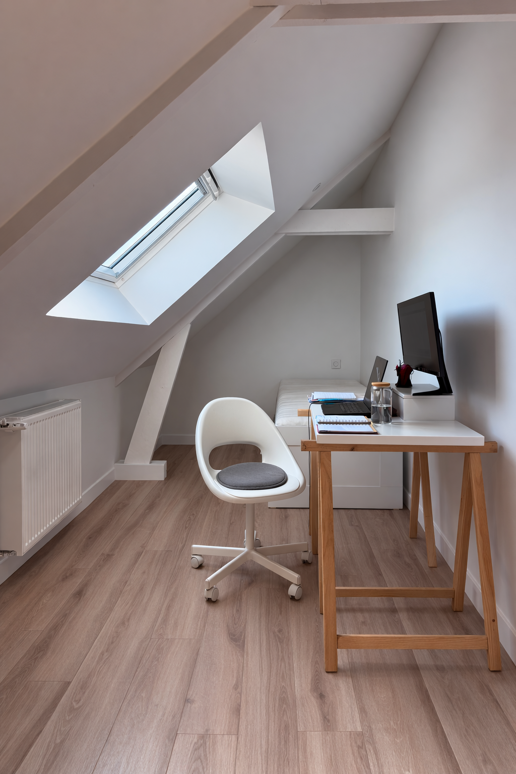 Aménagement de combles pour créer 2 chambres, une salle d’eau et un wc.