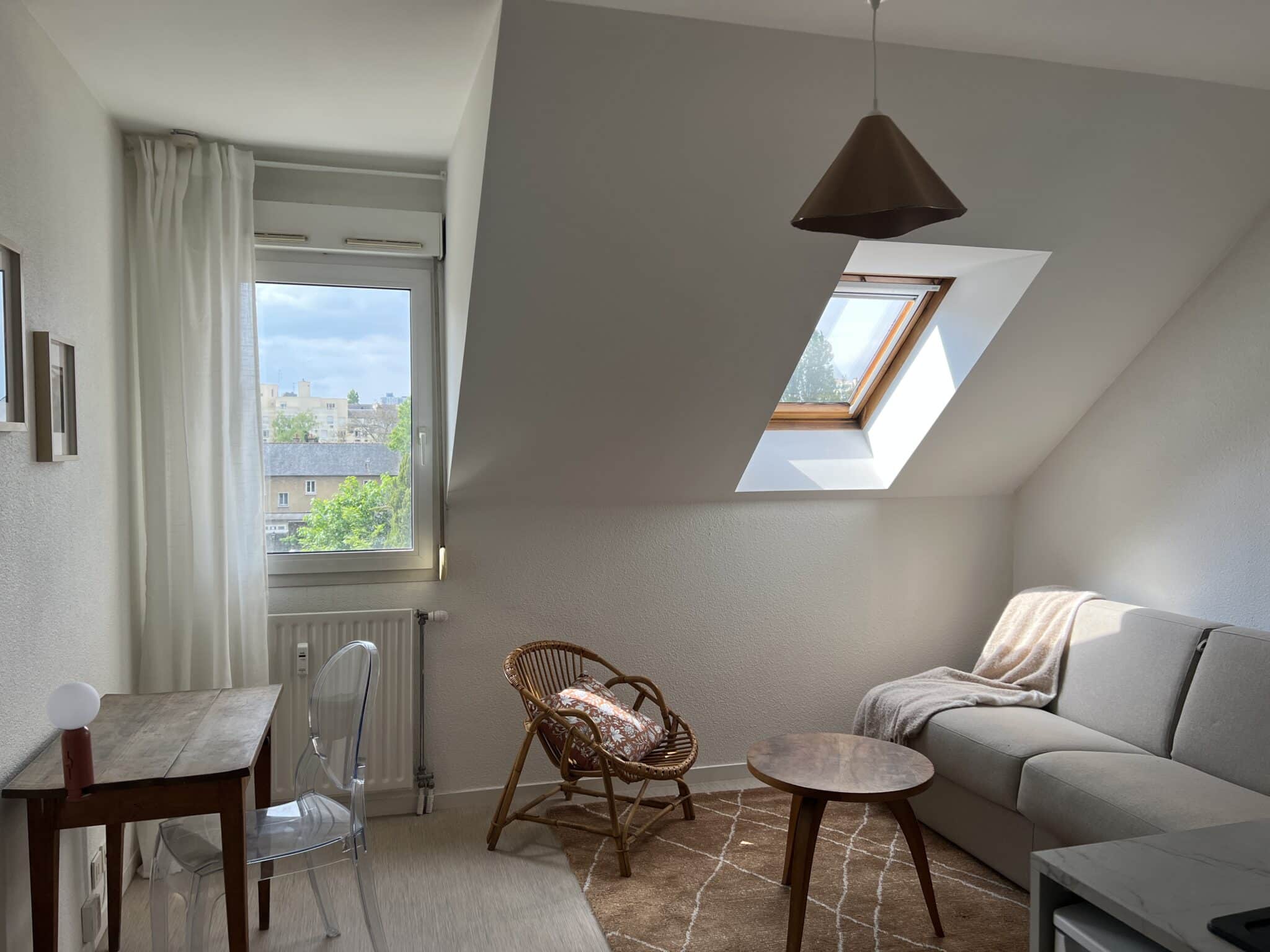 Après deux expériences avec Oberty, nos clients souhaitaient investir de nouveau dans Rennes pour louer un studio pour la rentrée. Notre service Chasse de bien leur a trouvé une petite pépite quasi prête à louer. Il fallait juste rénover la salle de bain et la cuisine que nous leur avons proposé de réaliser et installer. Nous avons également géré l’aménagement intérieur dans un mix broc et bohème et toujours en privilégiant le confort grâce à un canapé lit de qualité hôtelière.